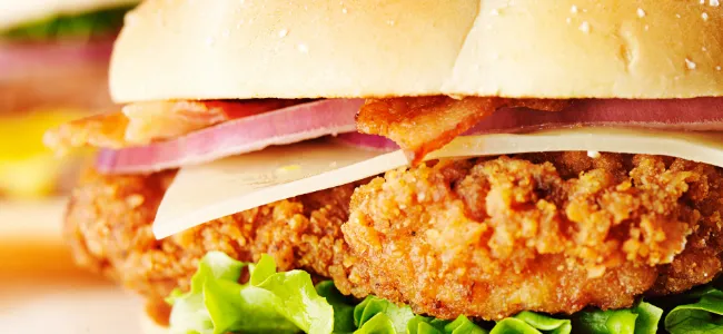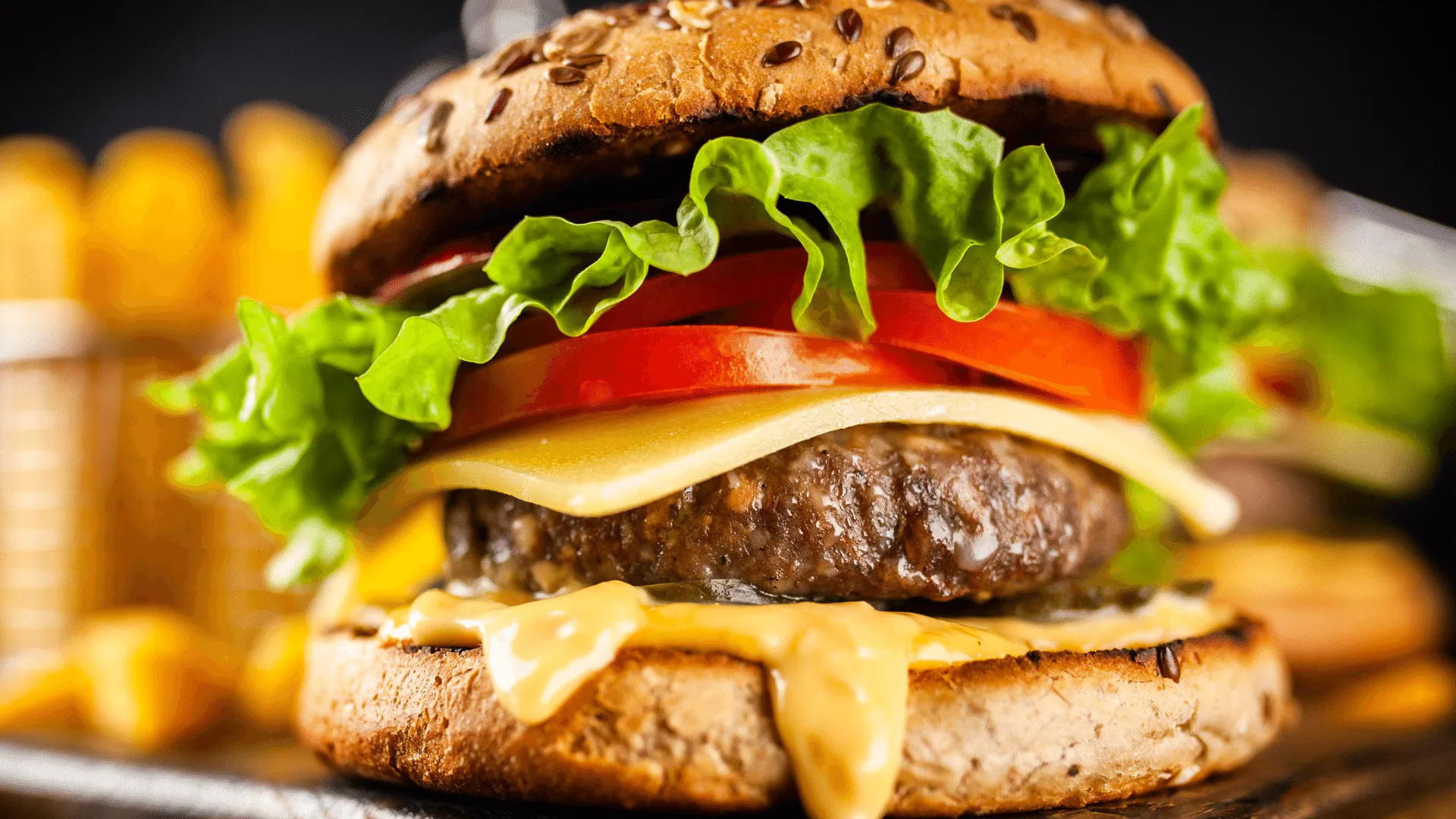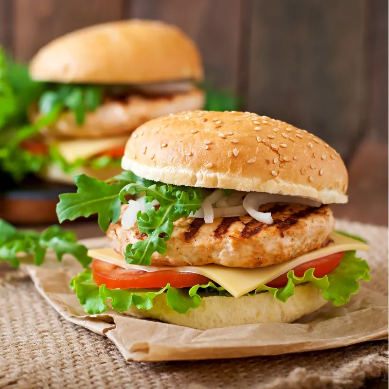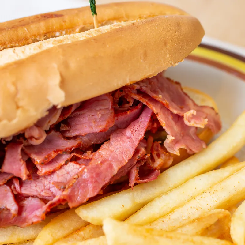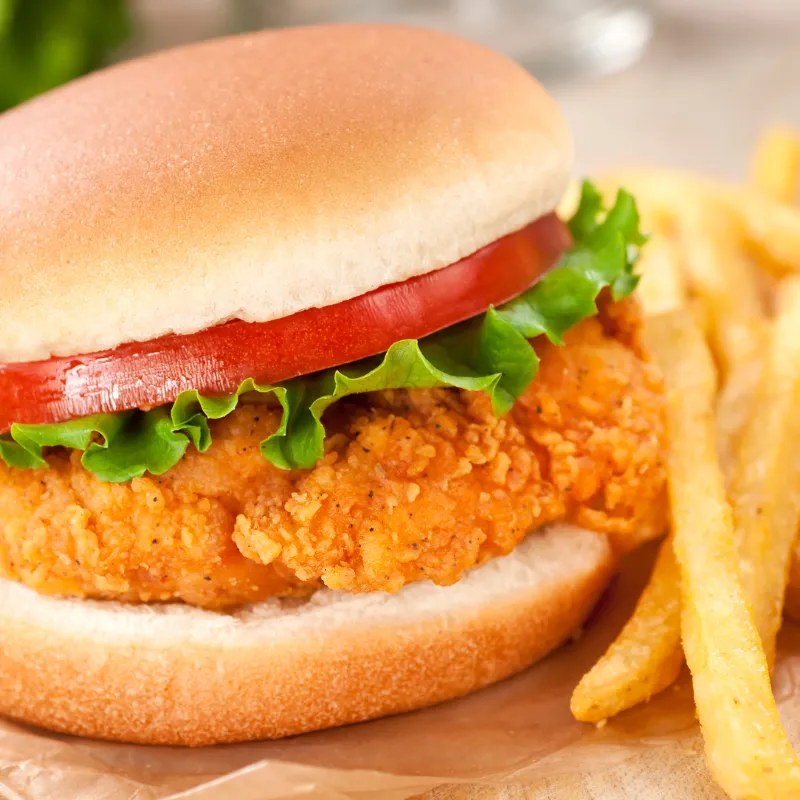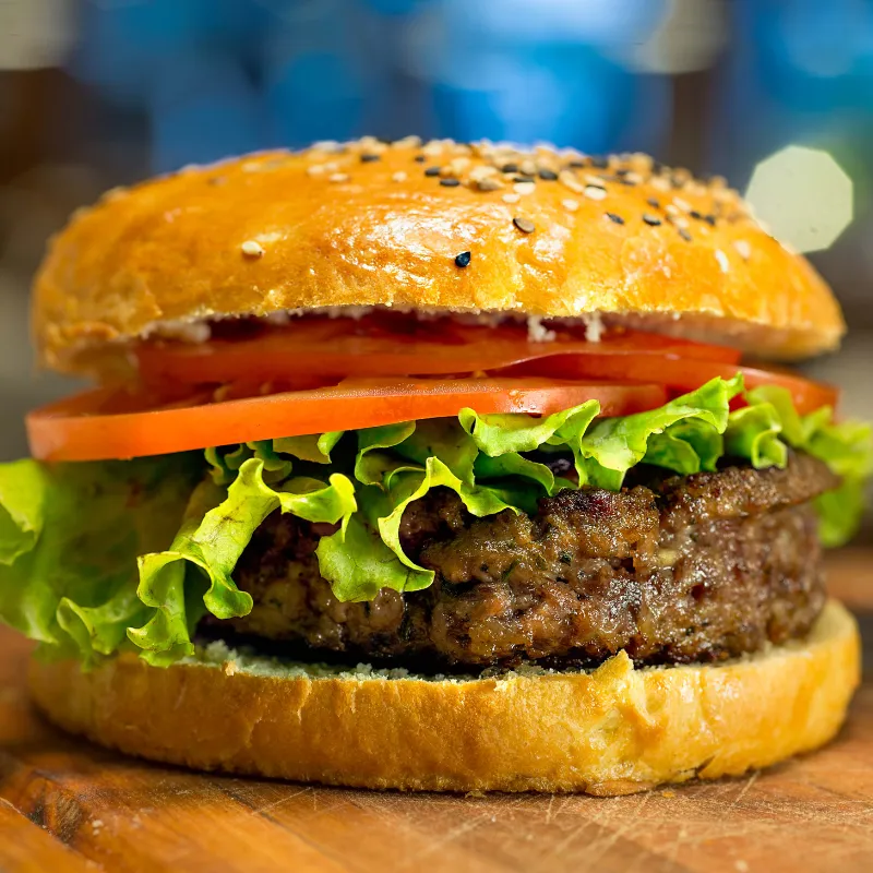 Two 1/4 pound 100% beef patties, two slices of American cheese, bacon, lettuce, tomato, onion and thousand island dressing. Combo meal comes with seasoned French fries and a medium fountain drink.