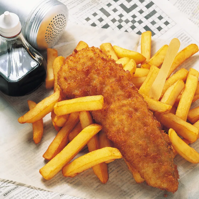 Battered wild-caught fish, French fries, side salad and dinner role. Combo comes with medium fountain drink.